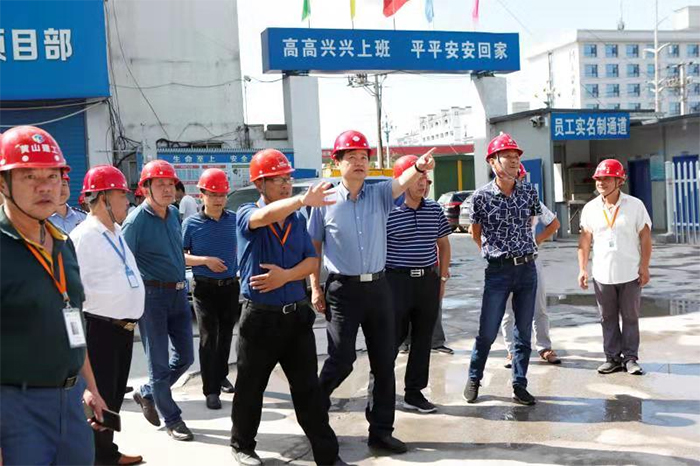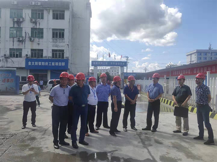 金秋時節,丹桂飄香。二〇一九年九月六日下午,黃山市人民政府副秘書長程亞東及市生態環境局、市公安局、市交通運輸局等有關部門主要領導在市住房城鄉建設局副局長徐樹紅、建管處副主任張先波的陪同下,風塵仆仆蒞臨黃山市建工集團承建的金太陽黎陽宸府項目工地考察調研。