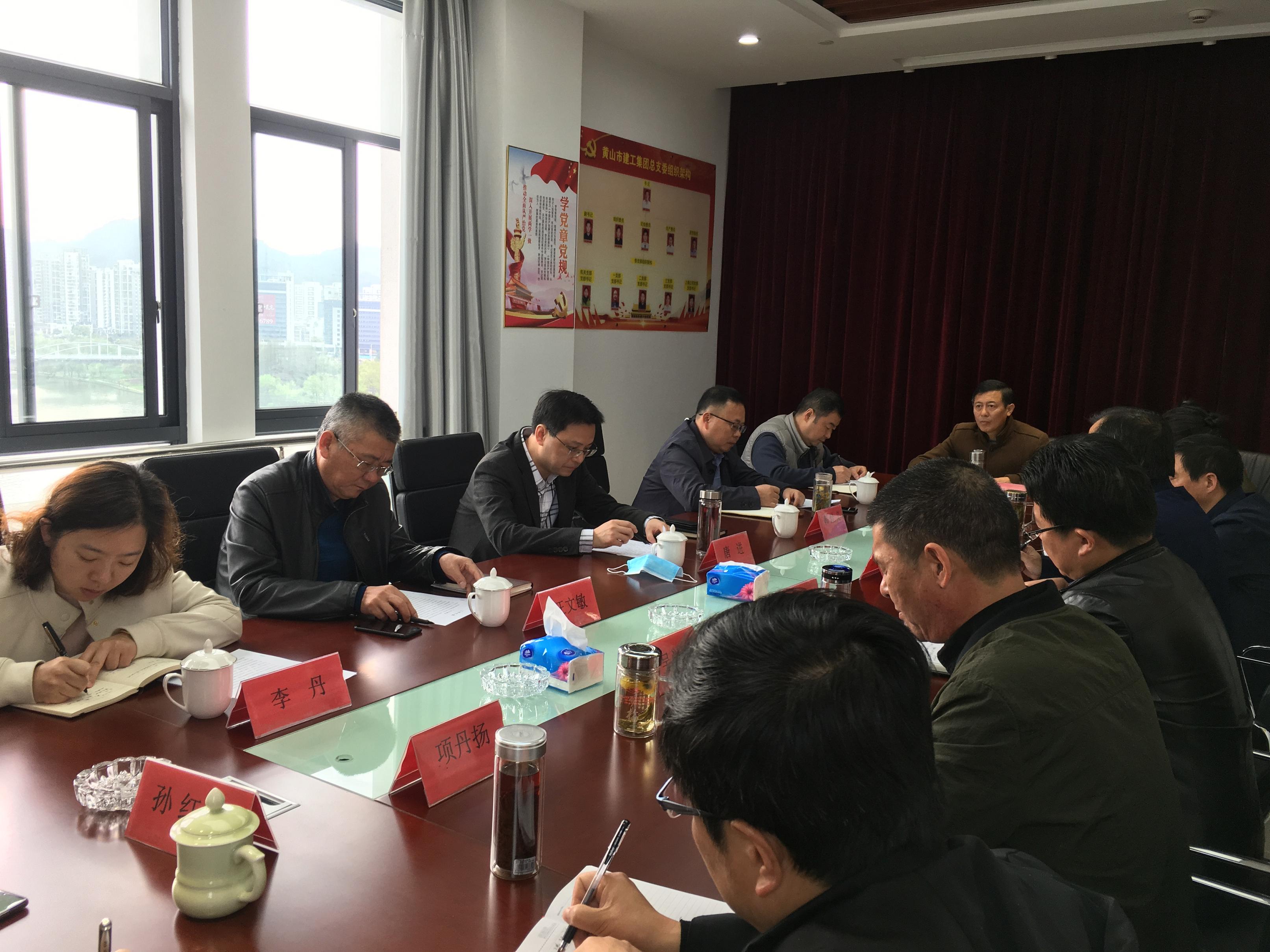 3月24日上午,黃山城投集團總裁唐進、副總裁韓灶義一行赴黃山建工集團工作調研,城建控股公司董事長汪文敏、副總經理萬鵬、李丹和黃山建工集團董事長項端陽、總經理葉金發等領導班子成員參加調研座談會。