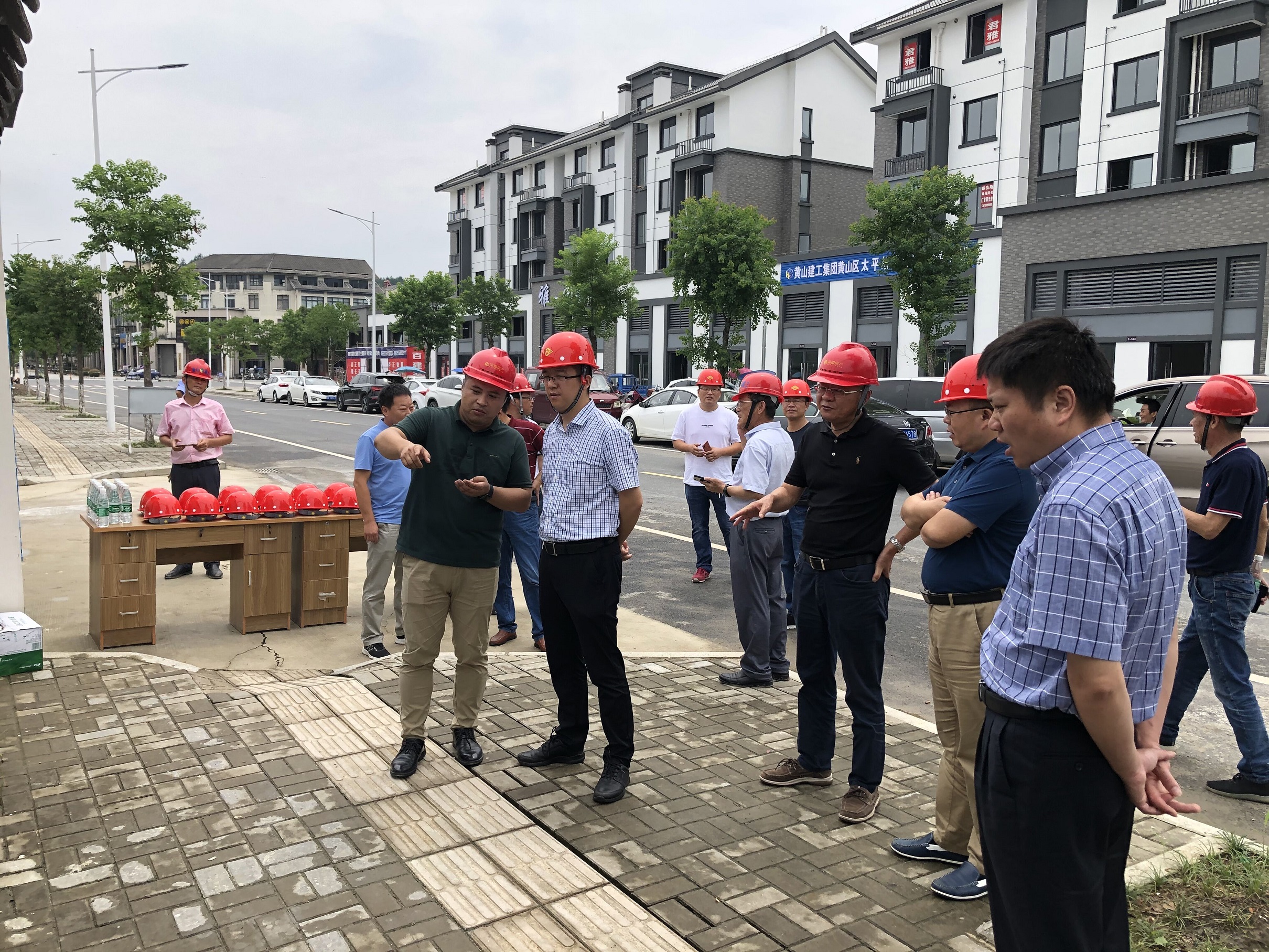 炎炎夏日,黃山建工承建的項目上一片繁忙景象。二〇二〇年七月二十九日上午十時許,黃山市副市長何毅在黃山市城投集團副總裁朱愛民、詹凱、韓灶義等相關部門領導陪同下首先蒞臨了黃山建工集團承建的太平故里項目考察調研。隨后驅車前往由黃山建工集團承建的中儲糧黃山直屬庫遷建項目、爐渣(建筑垃圾)綜合利用項目調研。期間分別聽取了各項目實施單位的情況介紹和進行了項目的實地考察,表示滿意。要求大家在抓進度的同時,要確保安全,保證工程質量,特別是高溫季節合理安排好作息時間,做好防暑降溫工作,保證一線人員身體健康。