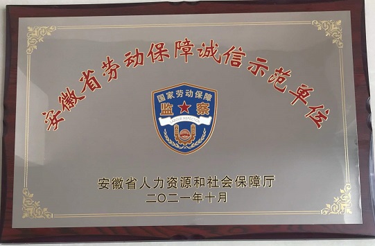 近日,從安徽省人力資源和社會保障廳傳來喜訊,黃山建工榮獲2021年“安徽省勞動保障誠信示范單位”榮譽稱號。
