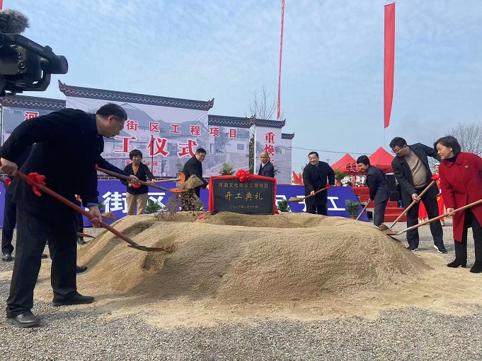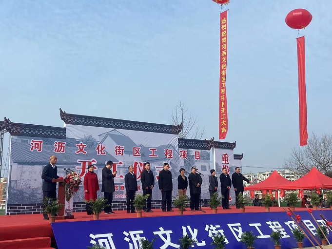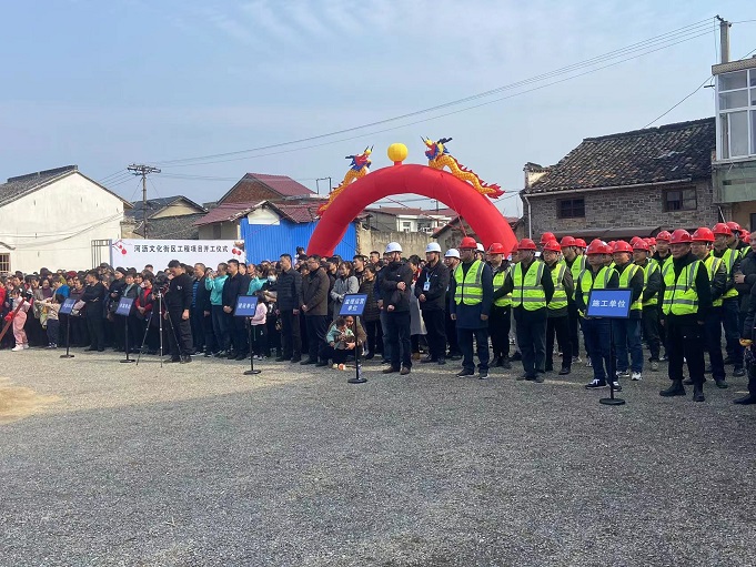 黃山建工集團(tuán)董事長項端陽、總經(jīng)理葉金發(fā)、副總經(jīng)理吳學(xué)武及項目負(fù)責(zé)人和部分施工人員參加了寧國市河瀝溪文化街區(qū)工程項目的開工盛典。