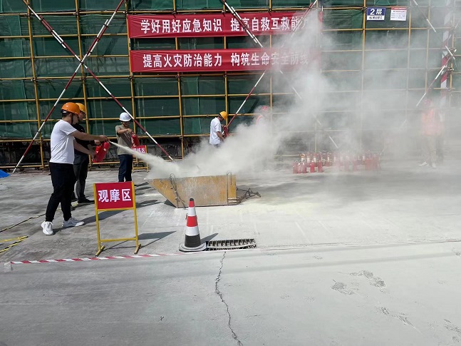 2023年6月是全國(guó)第22個(gè)“安全生產(chǎn)月”,為深入貫徹落實(shí)習(xí)近平總書(shū)記關(guān)于安全生產(chǎn)重要論述,嚴(yán)格落實(shí)集團(tuán)公司關(guān)于安全生產(chǎn)各項(xiàng)規(guī)定,進(jìn)一步強(qiáng)化公司整體消防應(yīng)急救援綜合能力。6月8日下午,集團(tuán)公司在齊云府六期項(xiàng)目開(kāi)展“人人講安全、個(gè)個(gè)會(huì)應(yīng)急”消防安全應(yīng)急演練活動(dòng)。項(xiàng)目安全員開(kāi)展消防器材的使用、撲救初起火災(zāi)疏散逃生等消防安全常識(shí)的培訓(xùn)。以通俗易懂的方式,深刻警示全體員工要提高對(duì)消防安全的重視。