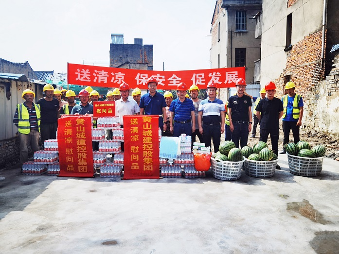 烈日炎炎,氣溫居高不下。為保障項目職工安全健康權益,確保項目安全生產平穩(wěn)推進,8月10日上午,黃山城投城建控股有限公司總經理汪國文等一行赴寧國市河瀝文化街區(qū)EPC項目工地開展走訪調研暨“夏送清涼”慰問活動。黃山建工集團股份有限公司董事長項端陽、總經理葉金發(fā)、副總經理吳學武陪同調研慰問。